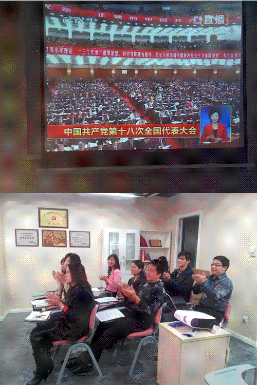 为喜迎党的“十八大”,积极配合劲松街道社会工作党委工作,2012年11月8日上午9点整,北京中隧党总支组织公司全体党员、入党积极分子及员工在培训室共同观看了“中国共产党第十八次全国代表大会”的视频直播。