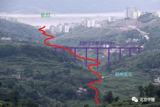 渝利铁路Ⅳ标段桥改隧工程位于丰都斜南溪沟谷中,距长江河口约1880m施工范围为D5K149+437~D5K149+810。原设计为192m的老院子大桥。由于地方造地工程的需要,改为填方后修建373m的隧道,隧道拱顶外再回填17m高的覆土。桥改隧工程不但解决800×104m3的土石方弃渣,需征土地600余亩弃渣场用地问题,而且改善斜南溪用地条件,新增耕地1535亩。该项目的结构形式为中国首例。