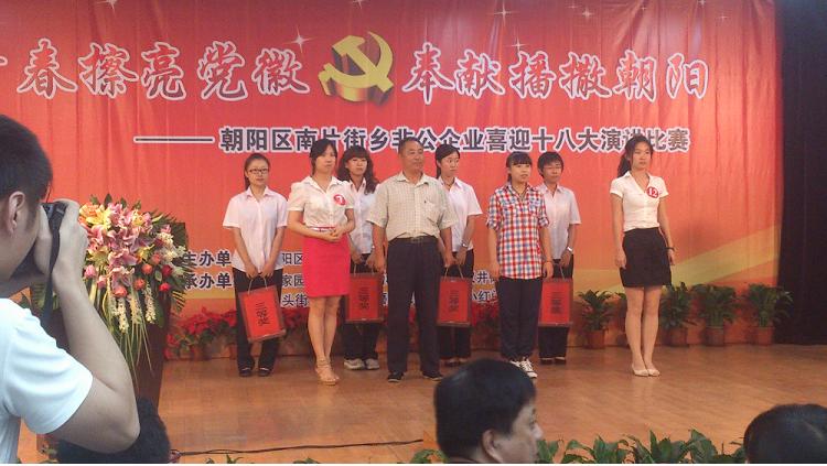 9月10日下午14时,由朝阳区委社会工委主办的朝阳区南片街乡非公企业喜迎十八大演讲比赛圆满结束。我公司人力资源部主管杨甜甜获得了第三名的好成绩。