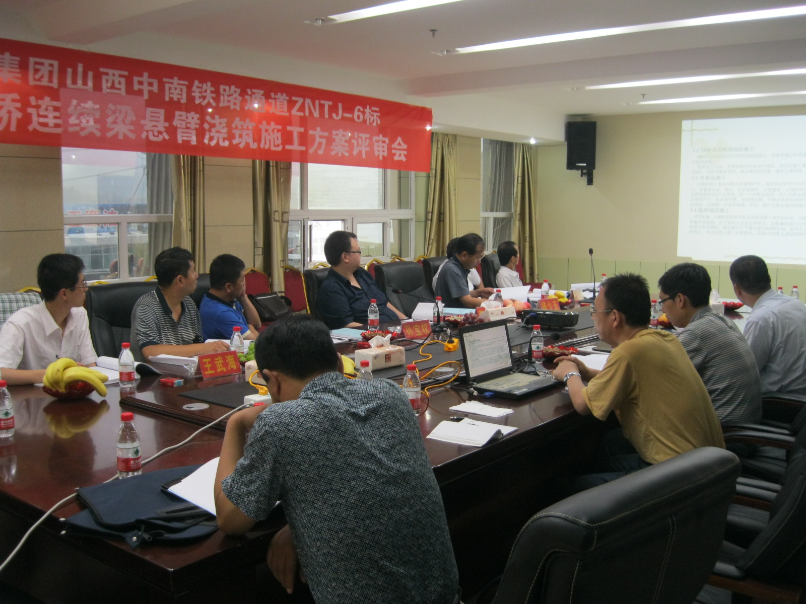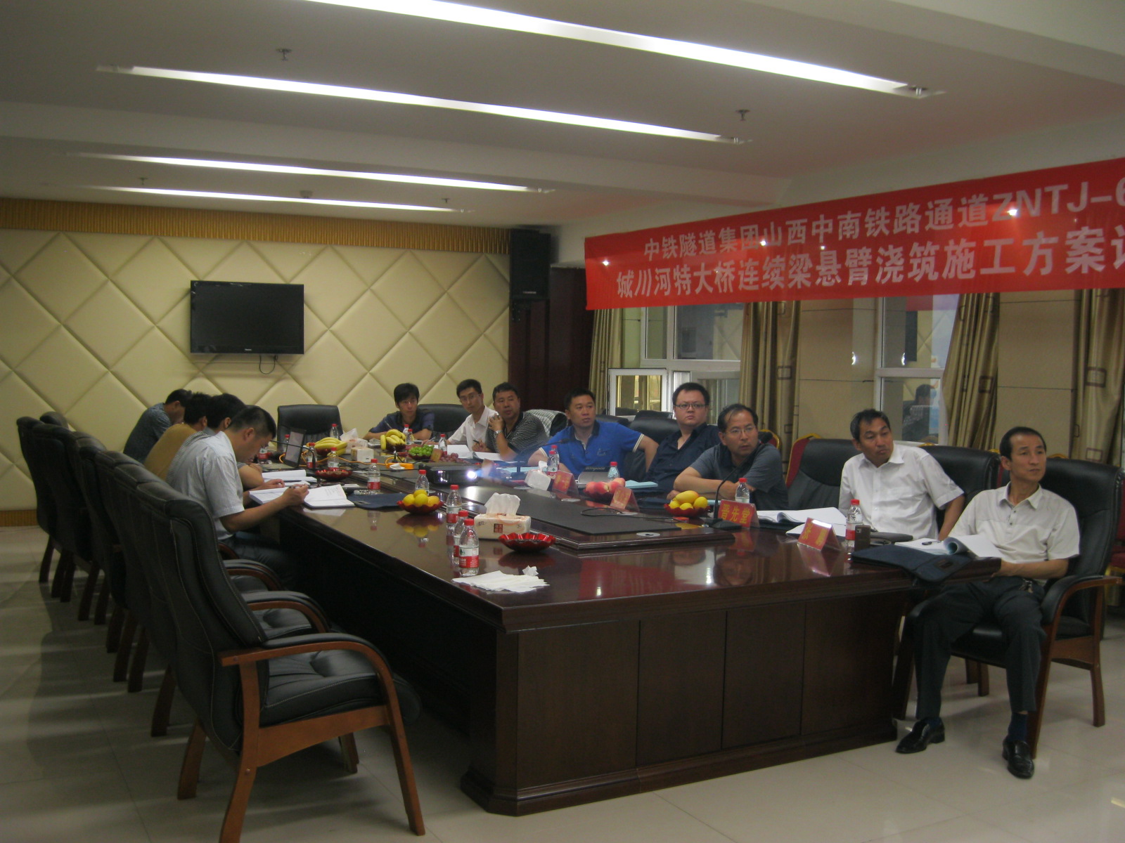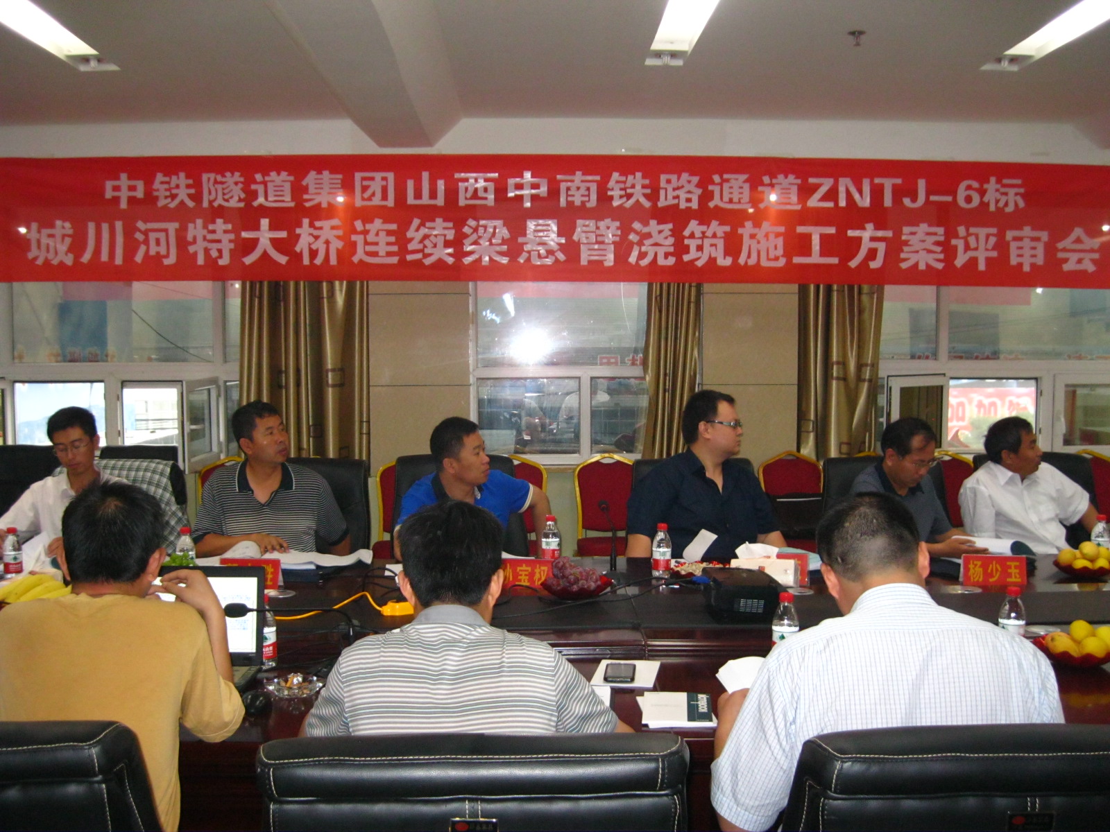7月8日,山西中南部铁路通道项目城川河特大桥连续梁悬臂浇筑施工方案评审会在隰县金立华大酒店顺利召开。会议邀请的桥梁专家有晋豫鲁股份有限公司吕梁指挥部桥涵主管工程师晋先堂、高级工程师张鹏,铁道第三勘察设计院高级工程师郭志胜,北京铁城监理中南通道ZNTJ-5标监理项目部总监教授级高工杨少玉,中铁隧道局三处工程部曹荣,中铁三局六分部总工王武海及北京中隧山西项目总工卢彬涛、山西项目副经理张浩等代表参加了会议。