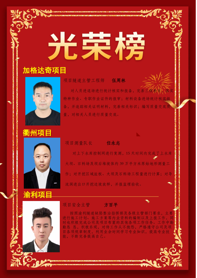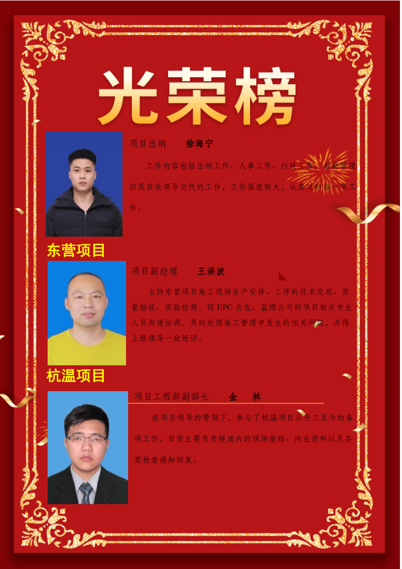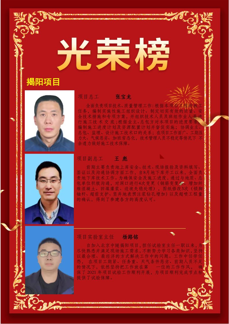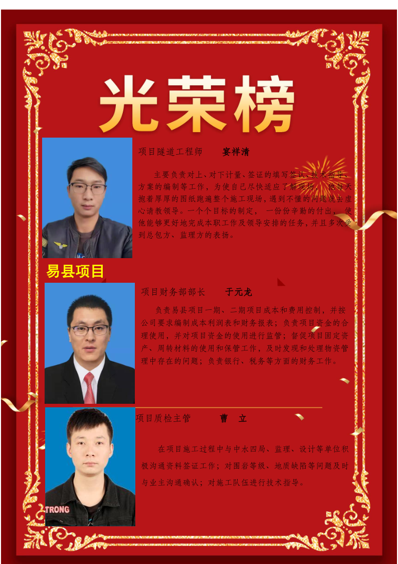 2021年公司业务突飞猛进,各项目众志成城、攻坚克难,各项工作取得了阶段性胜利,并涌现出一批兢兢业业、勤勤恳恳、积极进取的先进工作者。 为树立榜样,进一步激发基层活力,激励广大员工奋发向上、奋力拼搏,在企业内部形成良好的工作氛围,推动各项工作迈向新台阶,经各项目经理部民主评选和公司相关领导考核,决定对张宝龙、王洪波、魏建伟、刘吉等21位同志授予“2021年度先进工作者”荣誉称号,并进行奖励。