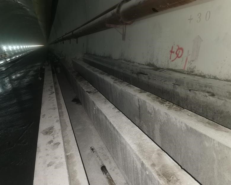 首组水沟电缆槽位于花岩头隧道进口里程DK307+149~DK307+141,水沟电缆槽承担着隧道排水、控制电缆的屏蔽干扰和重腐蚀环境中电缆的防护功能,修筑工序较为复杂,施工细节较多。施工前,项目工程部长金林按照设计要求对作业班组进行了详细的技术交底,钢筋的下料安装、水沟尺寸,尤其是排水管道的安装与二衬排水的衔接提出了严格的质量要求。为解决“跑模”和功效低的问题,我司杭温项目采用轨行式液压水沟电缆槽台车进行施工,省去传统模板安装加固时间,可以保证每天浇筑1模,大大提高了工作效率。施工过程中技术人员严把质量关,对不符合要求的部位提出整改要求,多举措保障了首组水沟电缆槽混凝土色泽一致、线形美观,外观质量和整体效果良好。