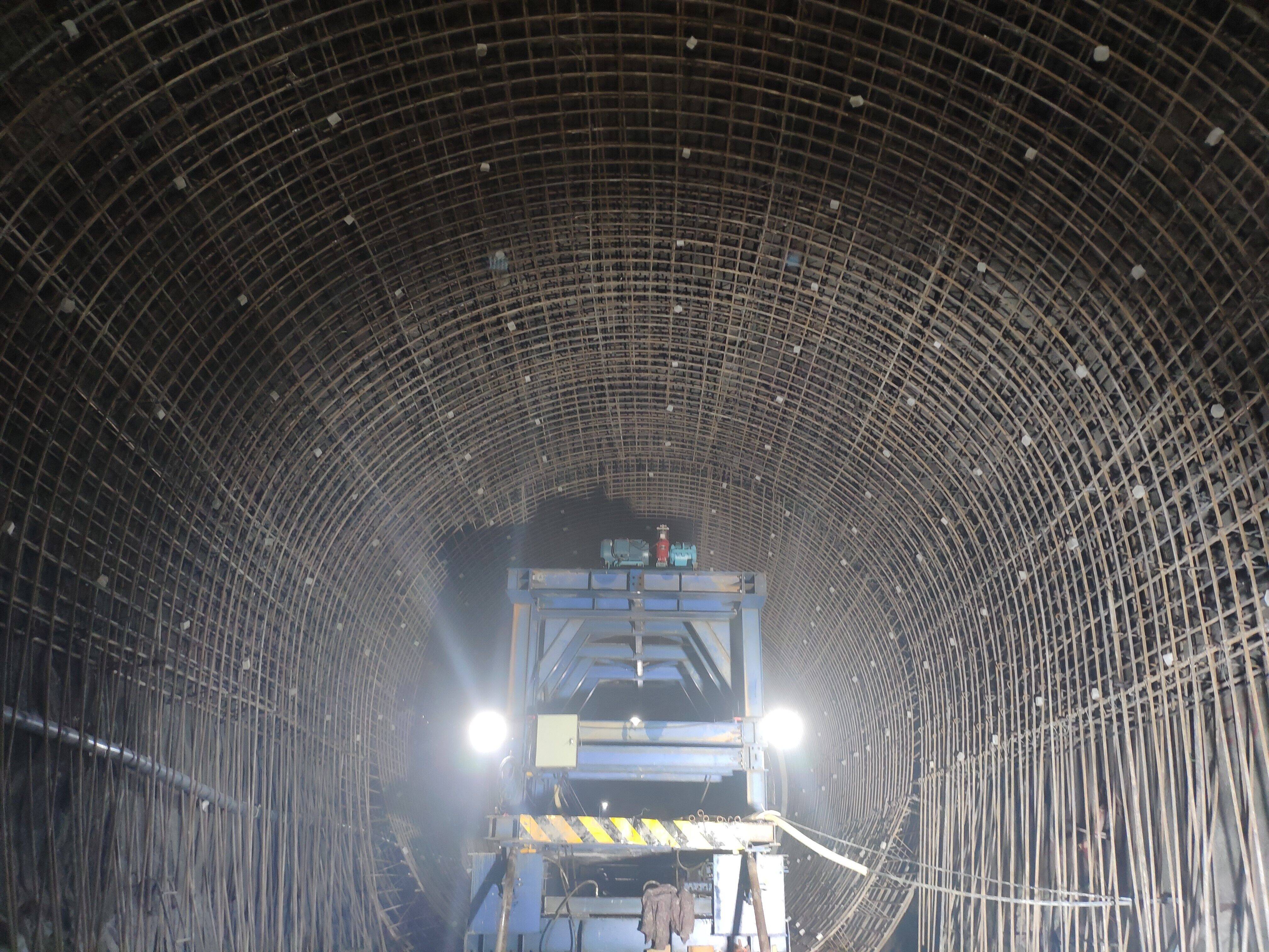 1#尾水隧洞作为连接下水库与厂房的重要地下通道,全长1386.8米,隧洞底坡4.952%,衬砌后断面直径6.8m,整体洞线长,弯道多,为施工增加不少难度。施工过程中,项目部精心组织施工,克服了弯道施工、施工作业面窄、工序交叉干扰多等种种困难,在原材料供应、施工技术、施工手段等各方面狠下功夫,不断总结经验,优化施工方案,在原来全圆针梁台车的基础上采购多套用于交岔部位钢衬模板,加强周转使用周期,同时增加施工班组,确保混凝土可以多部位交替施工,施工进度得到不断提升,确保了施工节点目标的顺利实现。
