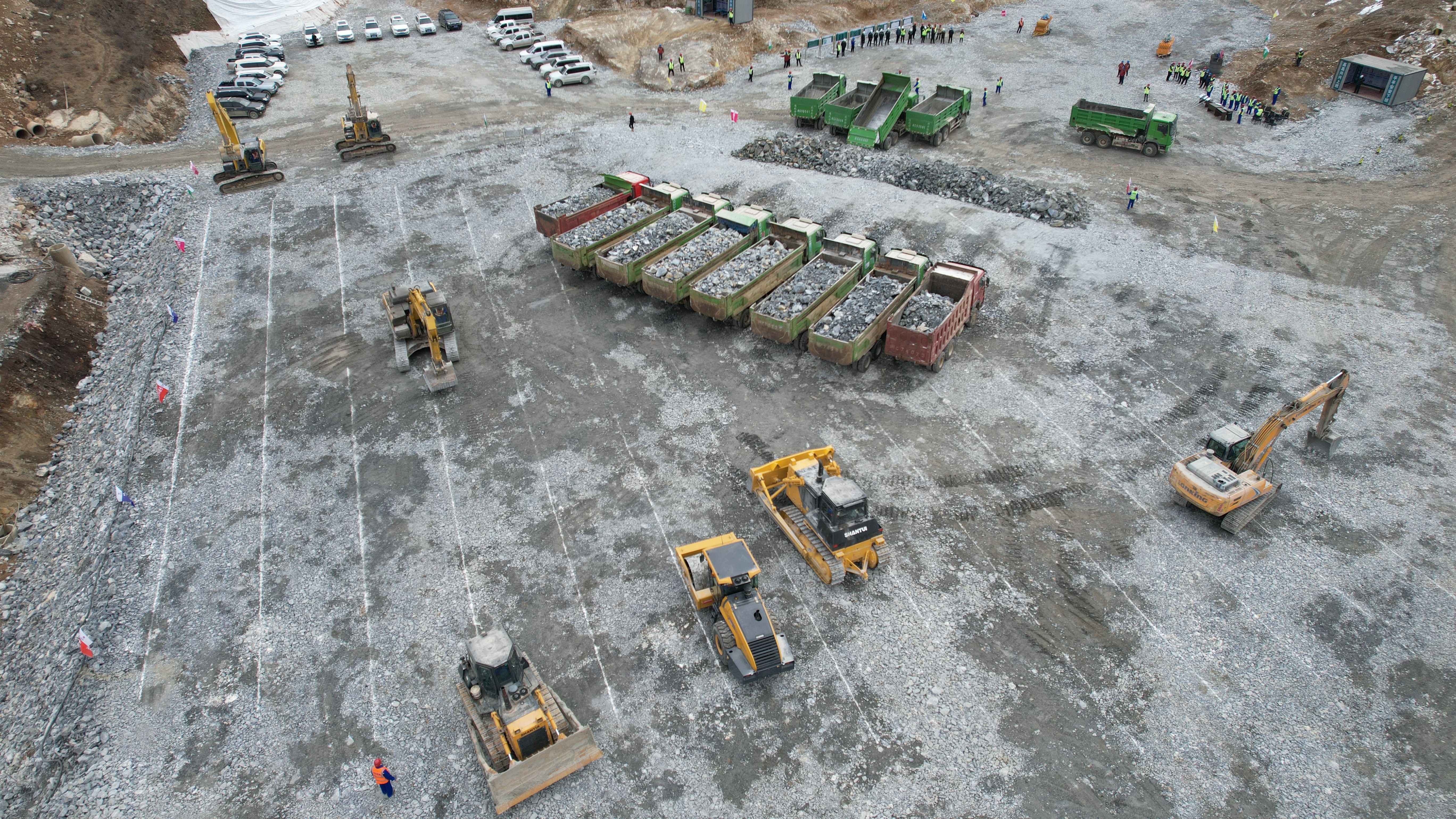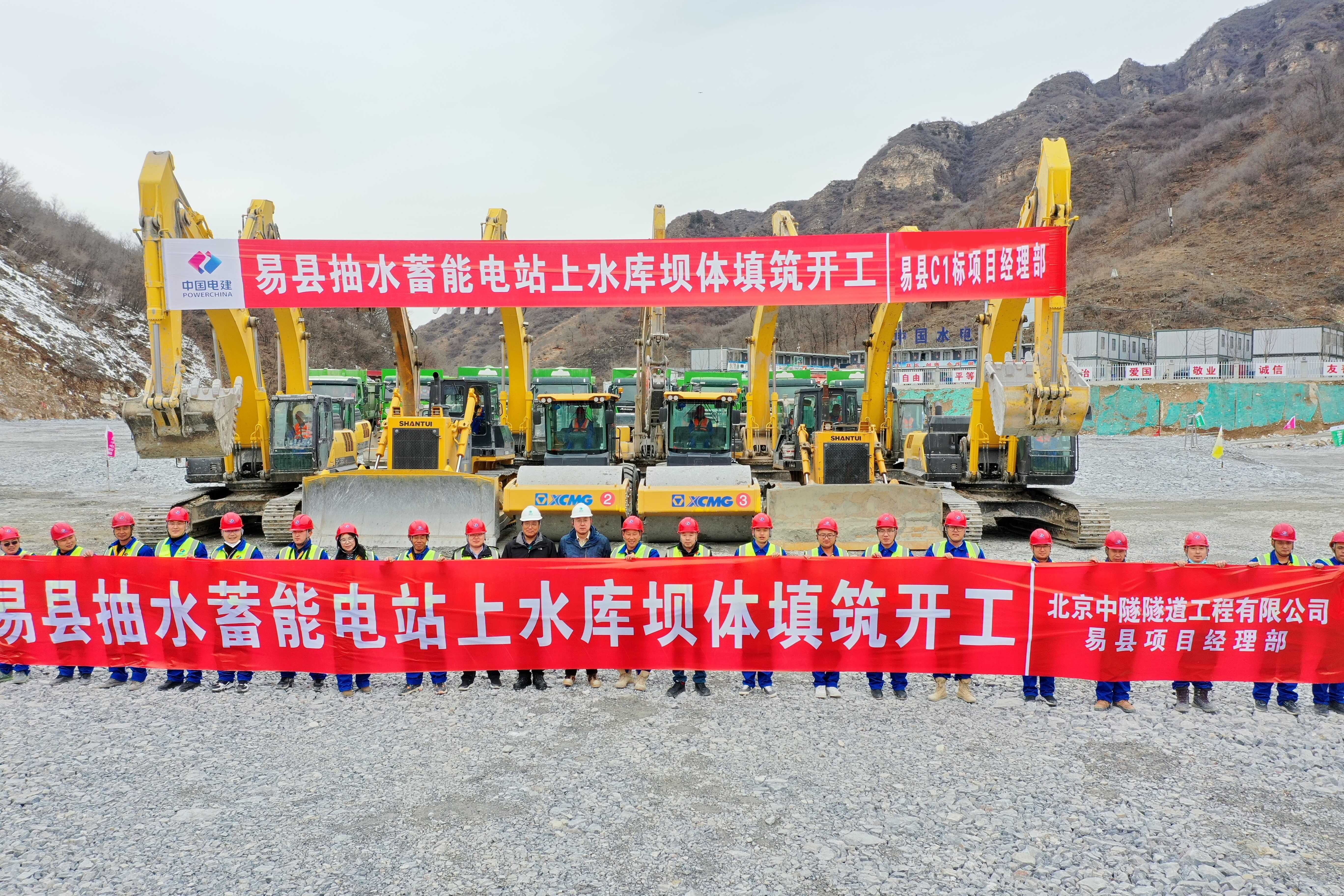3月22日,随着一车车填筑料缓缓驶进填筑区,倾倒在碾压基础上,标志着由我司承建的易县抽水蓄能电站上水库大坝填筑正式启动,业主、设计、监理等单位见证了填筑启动仪式。