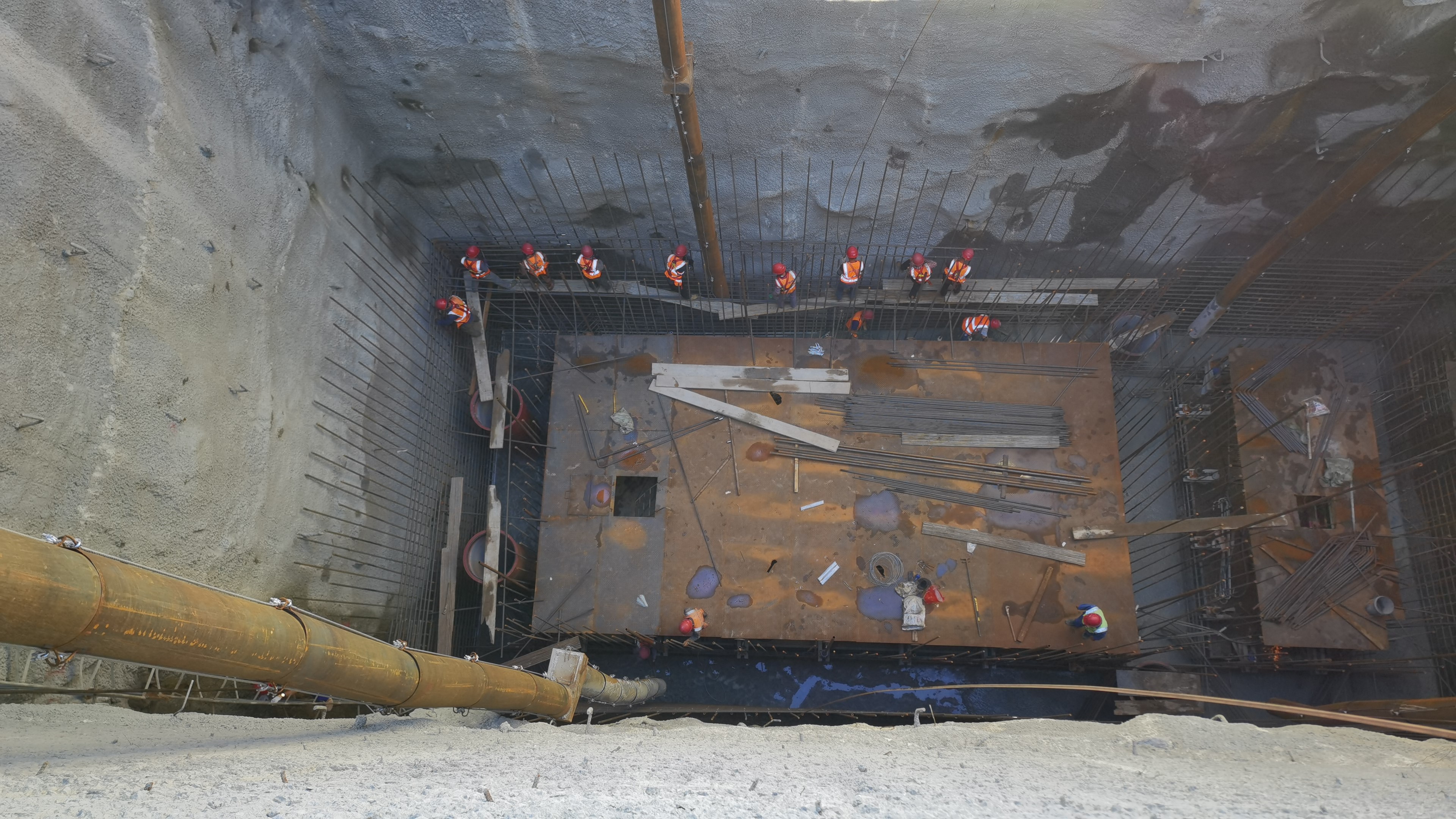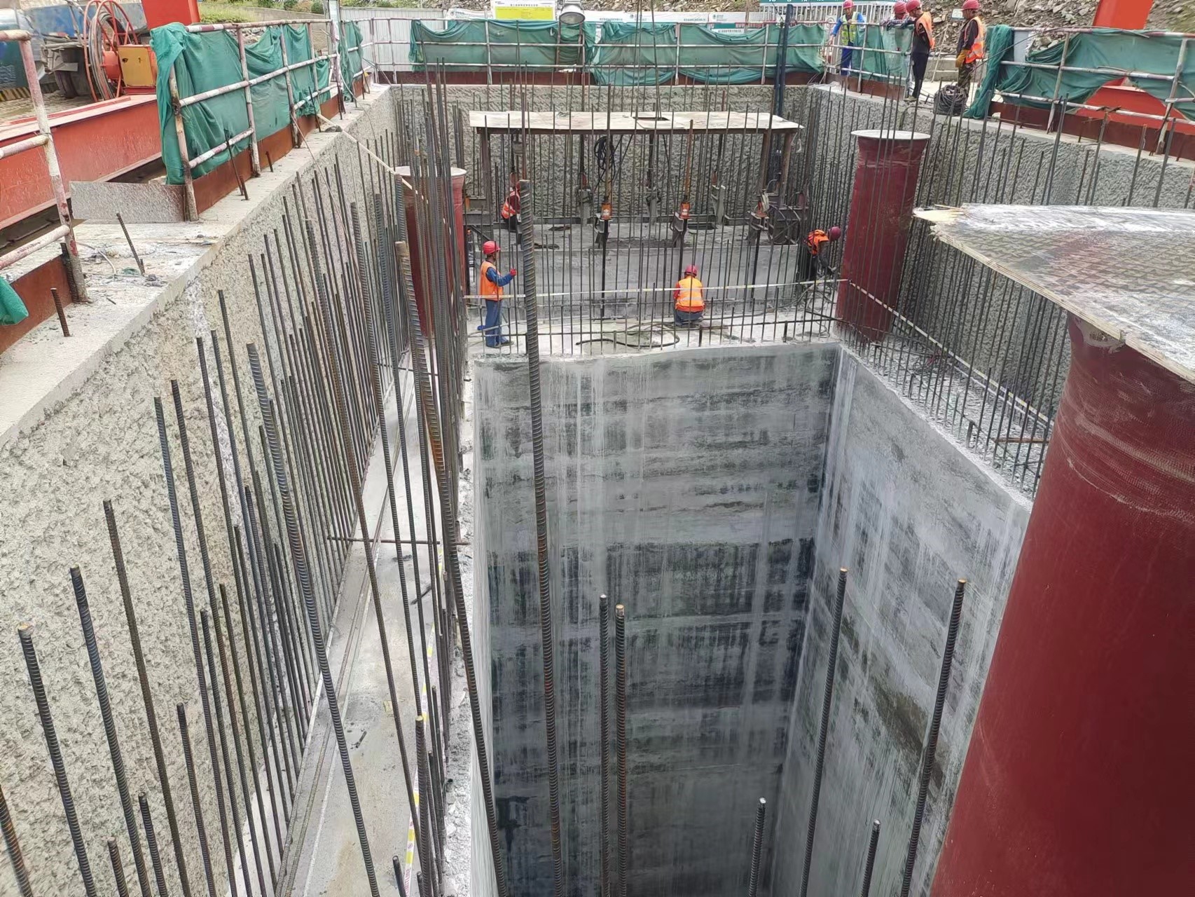 闸门井滑模浇筑施工于2022年8月10日启动,历时4天完成,平均每天滑升4.7米,共浇筑混凝土1725方,钢筋安装158t,滑模施工获得了业主、监理单位的高度认可。