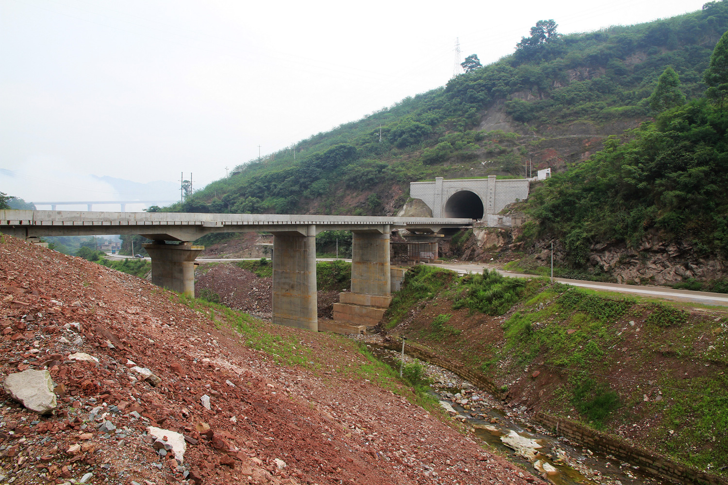 白水河双线大桥全长118.6m。上部结构采用18+3×24+18连续刚构梁。