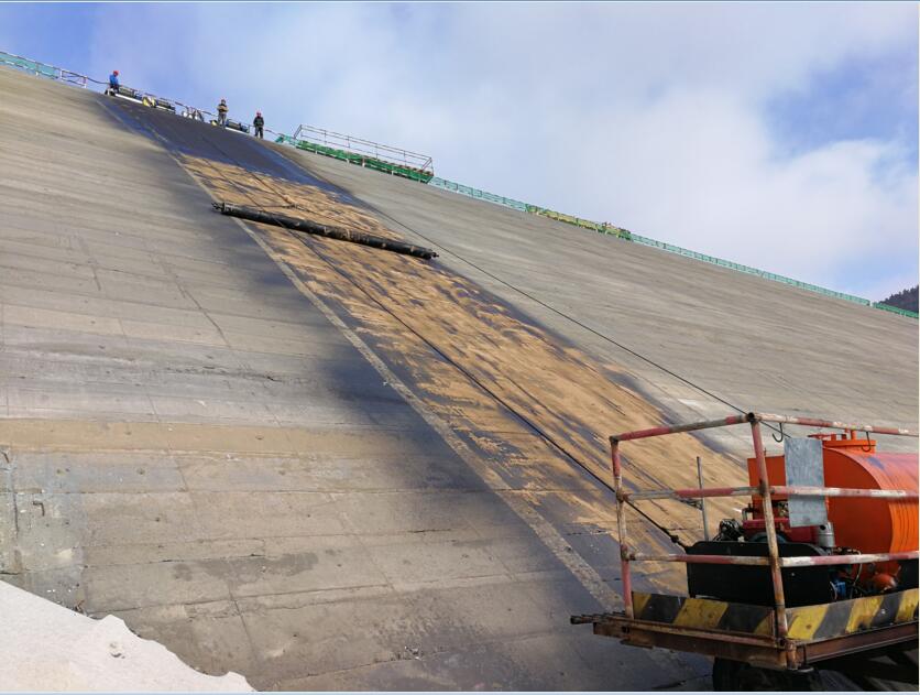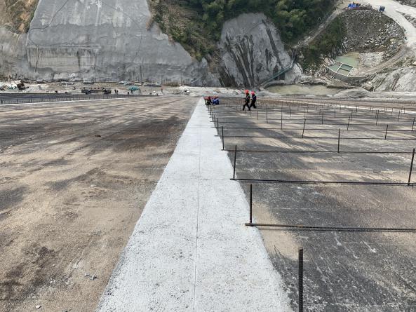 上水库大坝面板施工高为522.81米-595.5米,混凝土面板分37个序块,面板宽为14米,垂直最大高度72.7米,最大斜长125.06米,单块最大混凝土浇筑量为722方,混凝土总浇筑方量1.6万余方,钢筋制安达1600余吨。