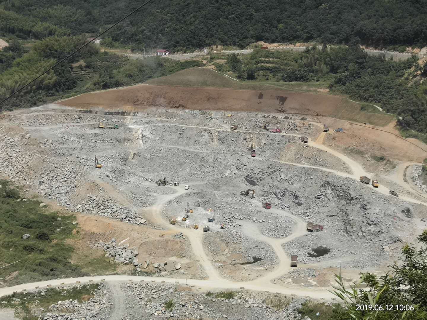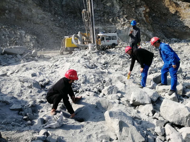 说到大坝填筑,不得不提石料的开采,上水库石料场以角闪斜长片麻岩及花岗岩为主,经现场检测,岩石的单轴抗压强度最高达到了210MPa,如何开采出符合设计技术指标要求的填料,是一个巨大的难题。项目部领导班子精心组织,采用深孔梯段挤压爆破方式,不断调整爆破参数,选用不同性能的钻孔设备,经过多次试验,最终确定了使用孔径120mm、间排距3m*2m的爆破孔位布置和单孔单响爆破联网设计的最优爆破开挖工艺,成功开采出了符合设计及规范要求的主堆石填筑料。
