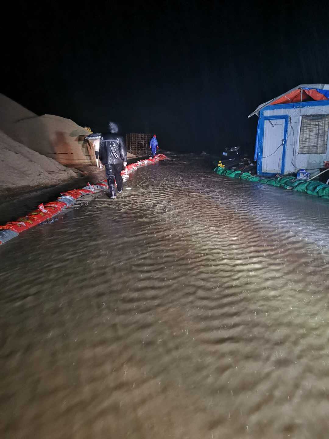 2018年7月,大坝填筑施工开始不久,工区遭受了十年一遇的特大降雨,雨水倾盆而下,持续多日。雨水携带着大量泥沙涌向大坝填筑施工区域,如果不及时采取措施,填筑碾压完成的堆石料及清理完成的坝基都将被泥沙污染。项目部立即组织机械人员冒雨奋战,现场排查确定水流走向后,在对应位置的坝区前沿,设置一道钢筋石笼并在石笼迎水面铺设多层土工布对来水进行过滤,成功阻止了泥沙进入坝区,确保填筑料及坝基不受污染。同时,连日的降雨,对施工安全造成了巨大威胁,此时,大坝填筑还未达到防洪度汛高程,项目部严格落实各项防洪度汛措施,领导轮流带班值守,确保了整个汛期的施工安全。