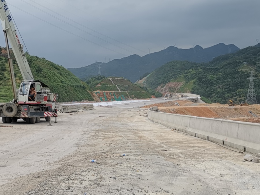 进口位于群山丛中的南洋村,仅有一条20公里左右的山路通往城区。山路崎岖蜿蜒,路况复杂多变,加上山中常是大雾弥漫,工程车辆根本无法安全通行。险阻在前,唯有逢山开路遇河架桥,重新修整出一条施工便道。历时三月,终于完成了对原有山路拓宽、改道、边坡防护、防撞栏等施工,便道才得以通行。