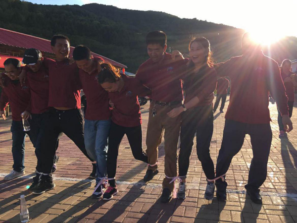 准备工作就绪后,通过“抢凳子”这一热身活动,大家情绪高涨,脸上乐开了花,消除了平时紧张的工作情绪。紧接着,两个队伍在信任背摔、不倒森林、穿越电网、叠报纸、合力吹气球、绑腿跑等活动项目上进行了比拼。这些项目都是对团队高度和谐的考验,每一次出色完成任务,都是团队全体成员的集体智慧、集体创新和齐心协力,共同奋进的表现。